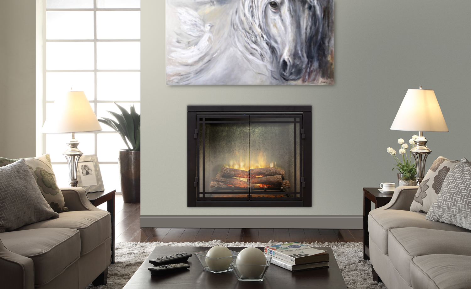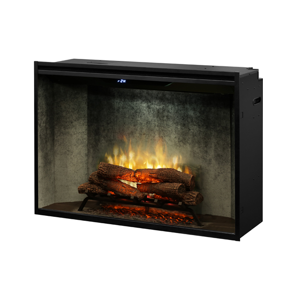 Revillusion is a completely new way of looking at fireplaces, and changing the standard for electric fires. The plug-in electric firebox features our Revillusion technology with Realogs Plus a full grate of life-size hardwood cast logs. It includes built-in thermostat, on/off flame control and separate controls for flame speed, interior brightness and heater. A clear view through the lifelike flames captures the charm of a modern wood-burning fireplace. Change the mood of the room by customising the firebox glow with a choice of warm hues and adjust the flame base red or blue great for all seasons.