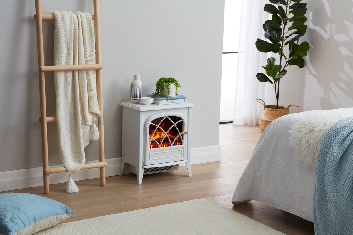 This compact electric stove gives you all of the cosy ambience of a wood stove with none of the mess. The clean white finish, working door and traditional stove style finish make it a perfect addition to any space. The Flame effect can be used independently of the heat source.