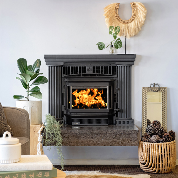 Like the Athena Flush, the Bay has solid cast surrounds that exude quality. The wide-view bay door allows maximum viewing of the fire itself, radiating warmth to the largest of rooms.