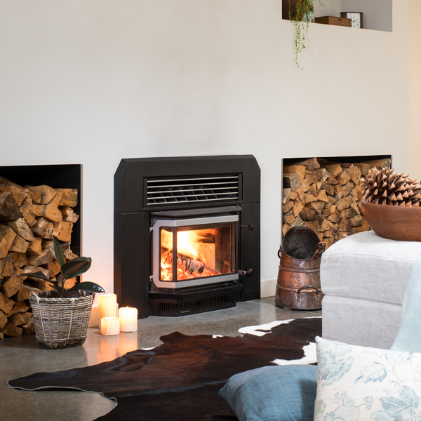 The clean streamlined look of the Forte is enhanced with the wide-view bay door for maximum viewing of the fire as well as maximum warmth and atmosphere.