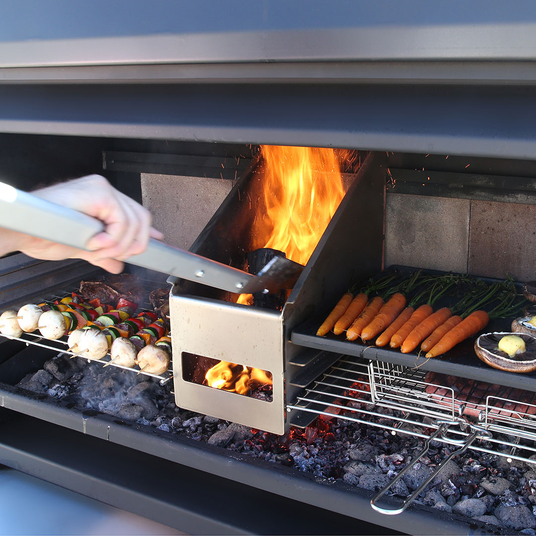 The Outdoor 1200 Braai is designed for installation onto a non-combustible plinth or bench top to your desired design or installed onto the Outdoor 1200 trolley base (optional extra). The Outdoor 1200 offers an incredibly versatile and exciting way to cook and provides a great place for family and friends to gather. The unique style of wood fired BBQ lets you cook a variety of food while delivering distinctive smokey wood fired flavours. All cooking grills and accessories are easily removed after cooking to use as an outdoor fireplace to keep your guests warm as the evening cools down.