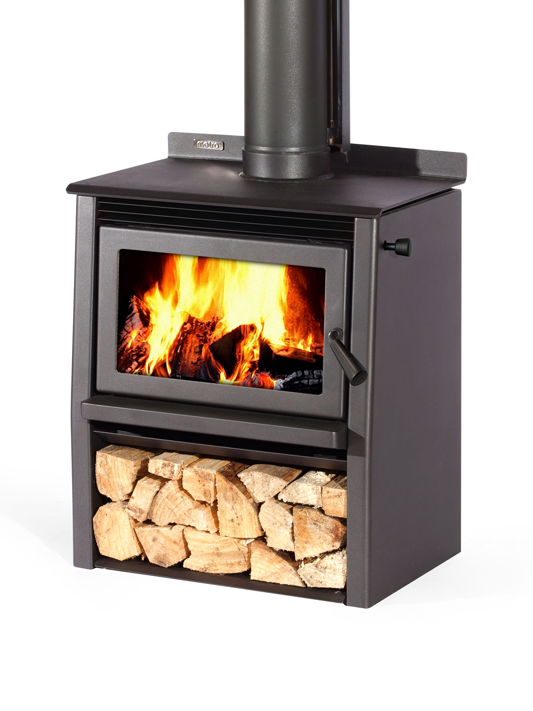 The Wee Rad – Woody features a clean burning firebox design that delivers a peak heat output of 15kW to warm your home while also providing convenient wood storage. The generous door glass offers the perfect flame view to enjoy on those cold winter nights. The flat radiant cooktop has ample space for both pots and kettles. This model can also be fitted with a wetback to assist with your water heating requirements.