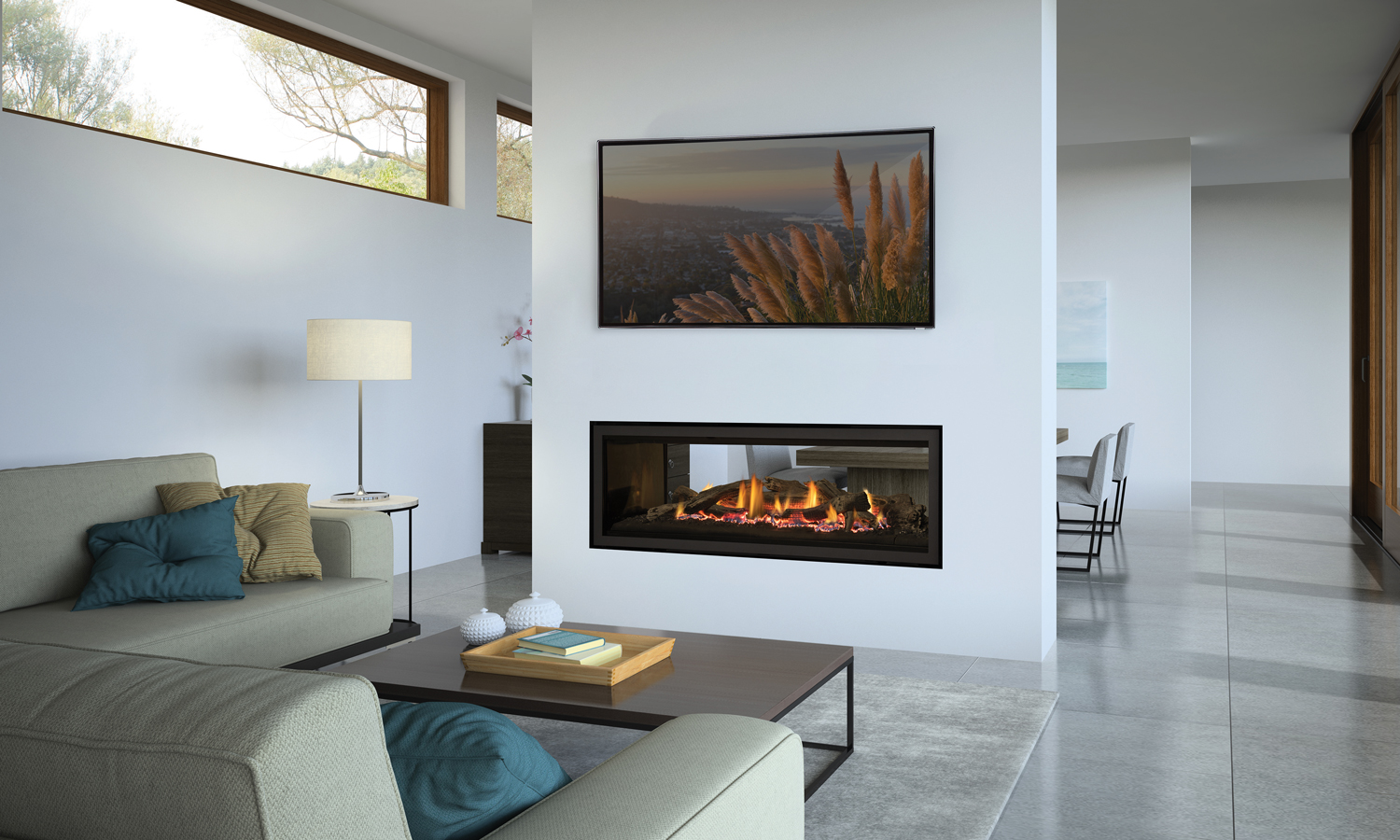 There are 2 sides to every fire. The Regency Gf1500LST gives you 2x the viewing area and 2x the control. With an artistically designed driftwood log set, that provides a unique view on each side; you can now benefit from maximum heat and maximum flame, in 2 different spaces.