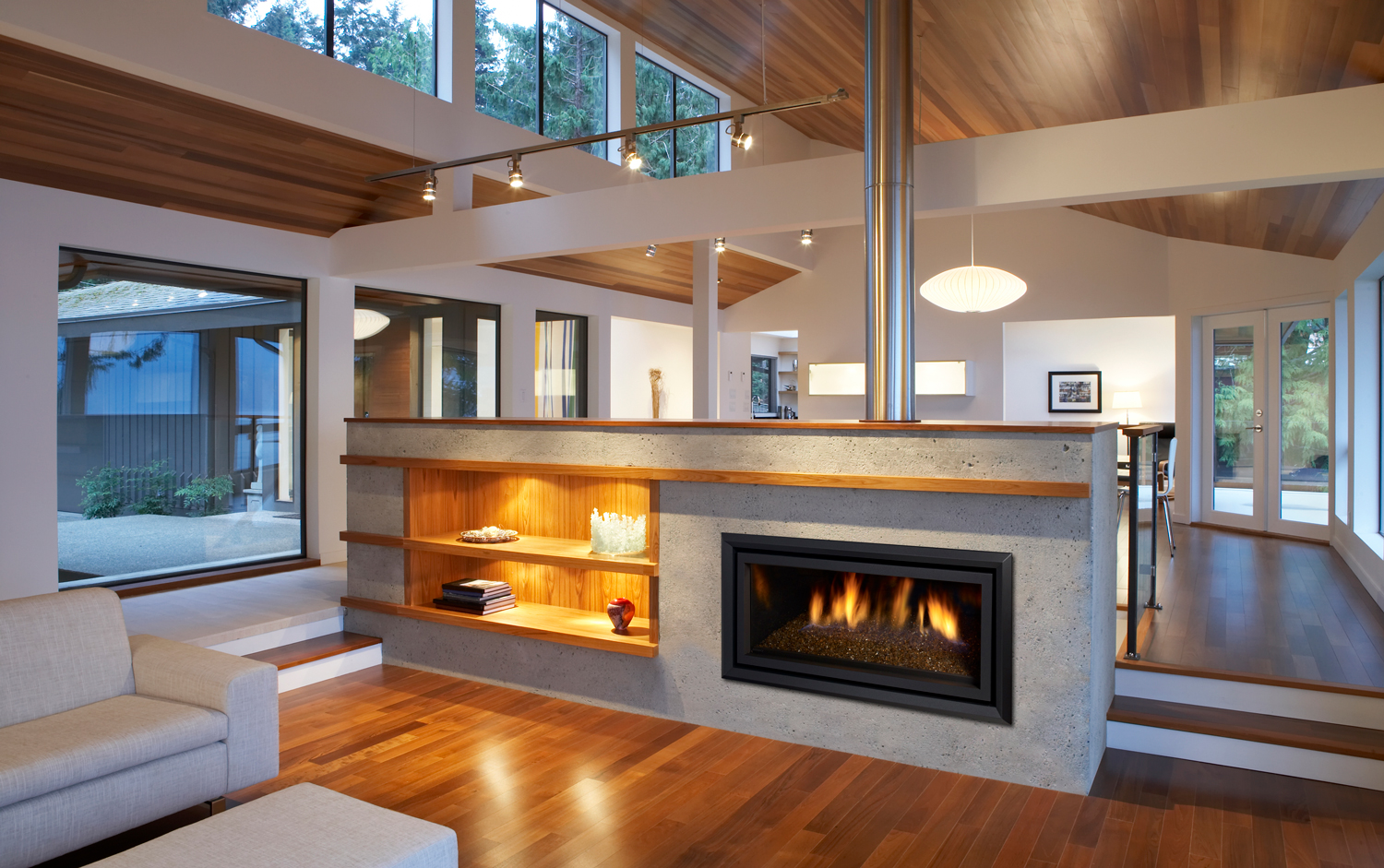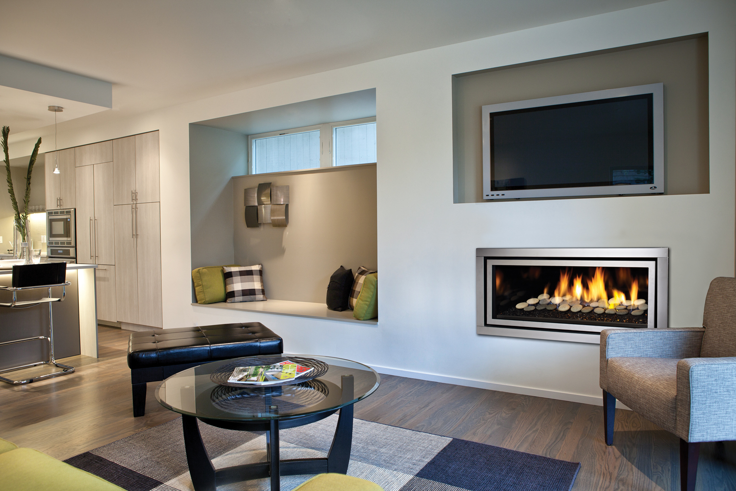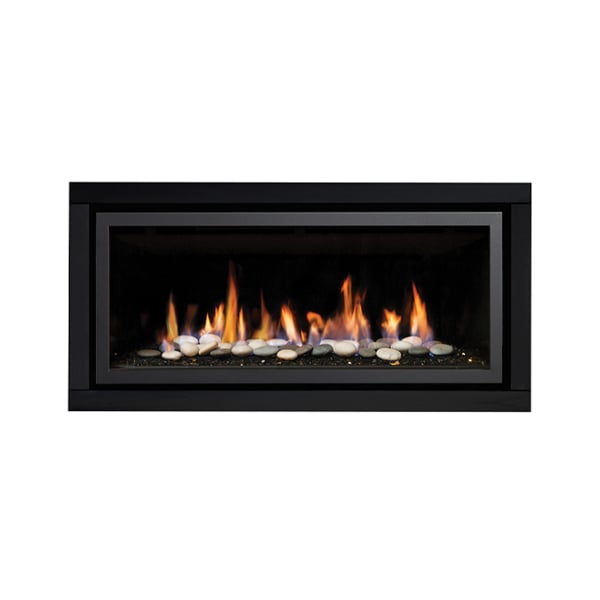 The Regency Greenfire GF900C-2 indoor gas fireplace adds modern expression to any living space with today’s sleek, linear styling. This fireplace features seamless design and beautiful wide angle flames set on a full bed of shimmering crystals and volcanic stones. Efficient, clean-burning zone heating has never been more stylish!