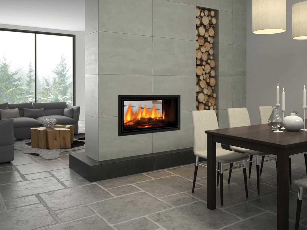 This see-through fireplace gives you 2x the viewing area and 2x the control. The Mansfield is designed to fit into a custom built wall without a brick fireplace or chimney, ensuring it can be featured in any room, while adding ambience and style. The large glass doors provide an exceptional view of the fire whilst complementing the décor of any home. As a slow combustion heater the unit can be controlled to maximise heat output as well as wood usage.