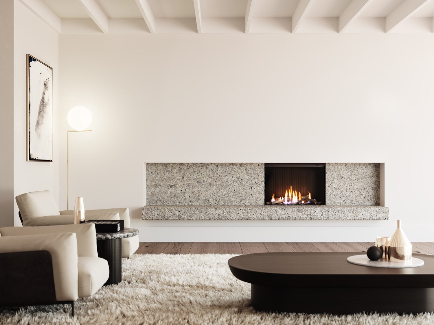 Rinnai's designers took their inspiration from Aotearoa's unique landscapes. They hand selected driftwood washed up on our beaches, and stones to match those shaped by our rivers and tides. These were painstakingly recreated as perfectly lifelike ceramics.